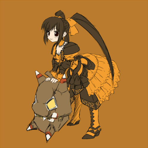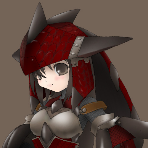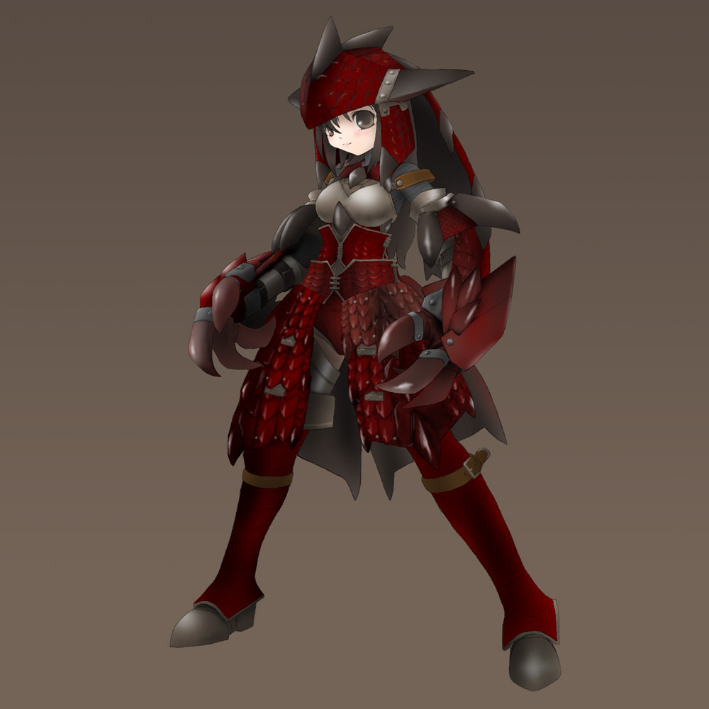 最初は足装備にもちゃんと鱗描きこんでたのですけど全体的なメリハリが無くなってごちゃごちゃした感じになったのですっきりさせたのですがこれはこれでなんかびみょーですね。